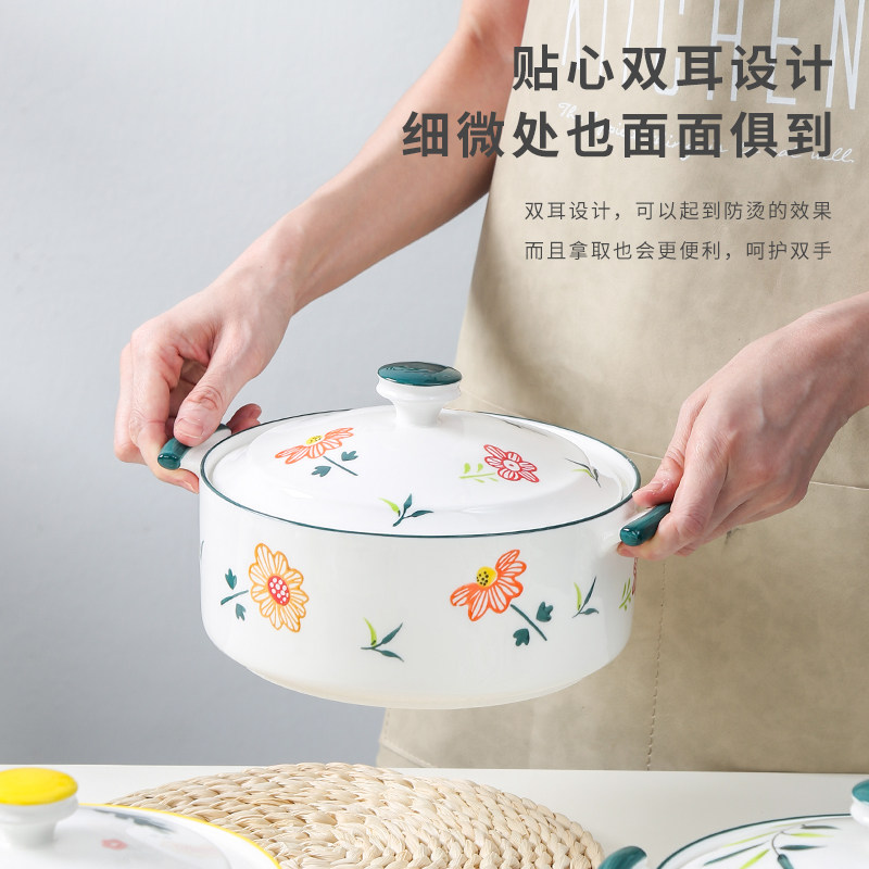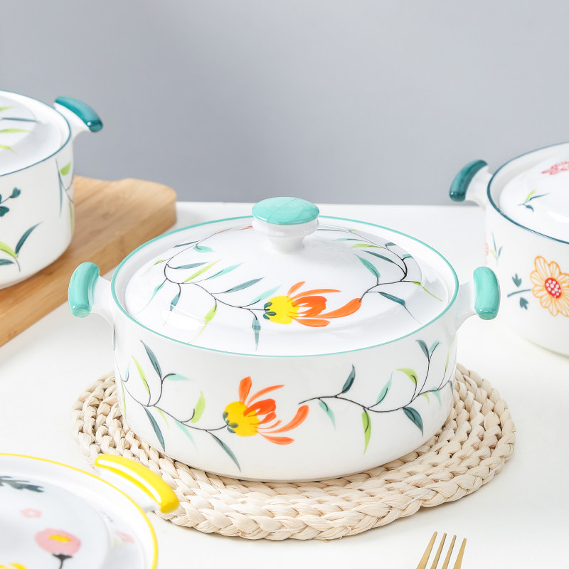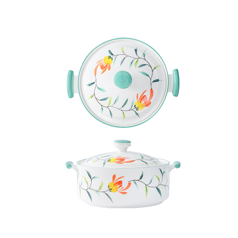 10 10-inch with lid double ear pan-yellow rose 10 inch with lid double ear pan-sunflower 10 inch with lid double ear pan-green leaf 10 inch with lid double ear pan-sunflower