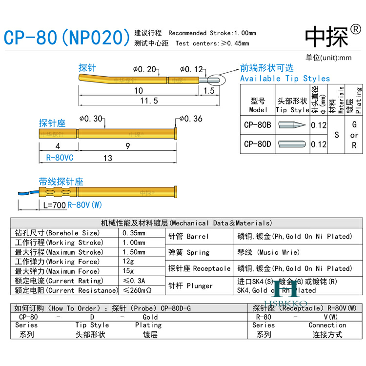 Micro probe CP-80 probe P020 test needle 80# test probe material wear-resistant and durable