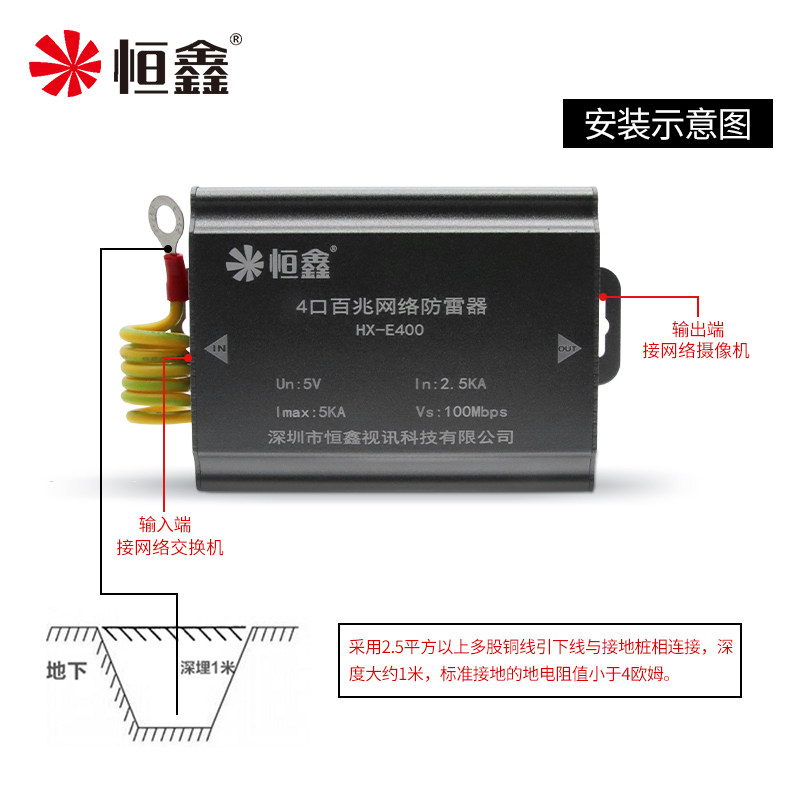 Hengxin 4-port 100M network lightning arrester 100M network line four-way signal arrester Monitoring surge protector