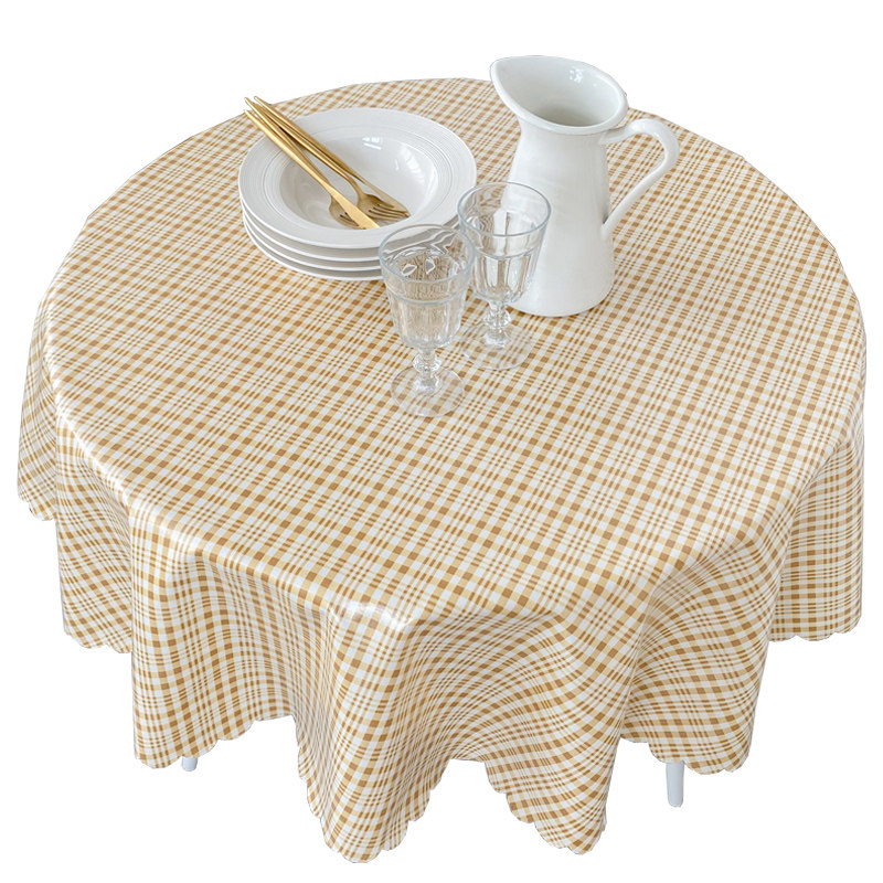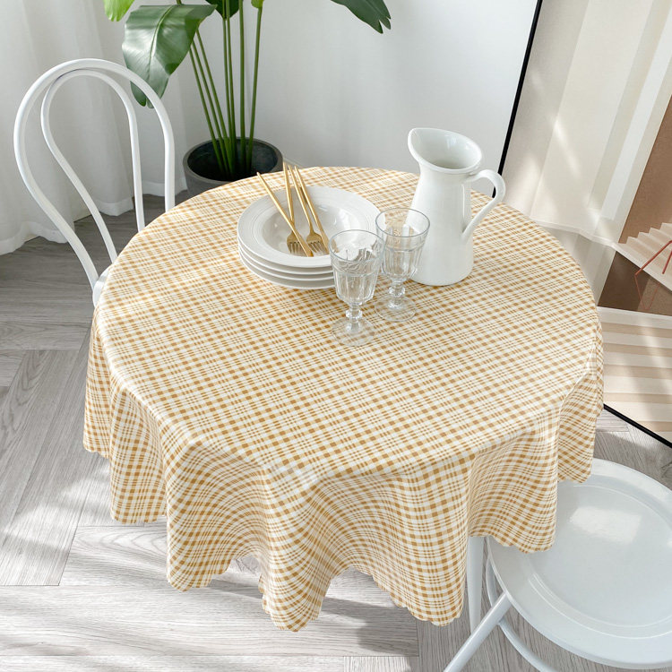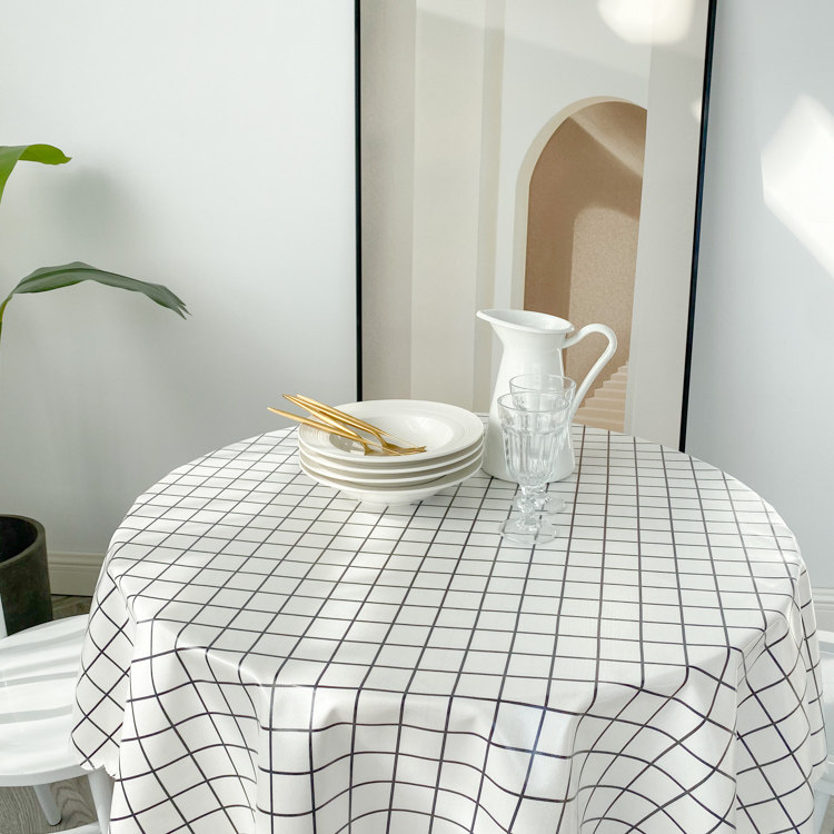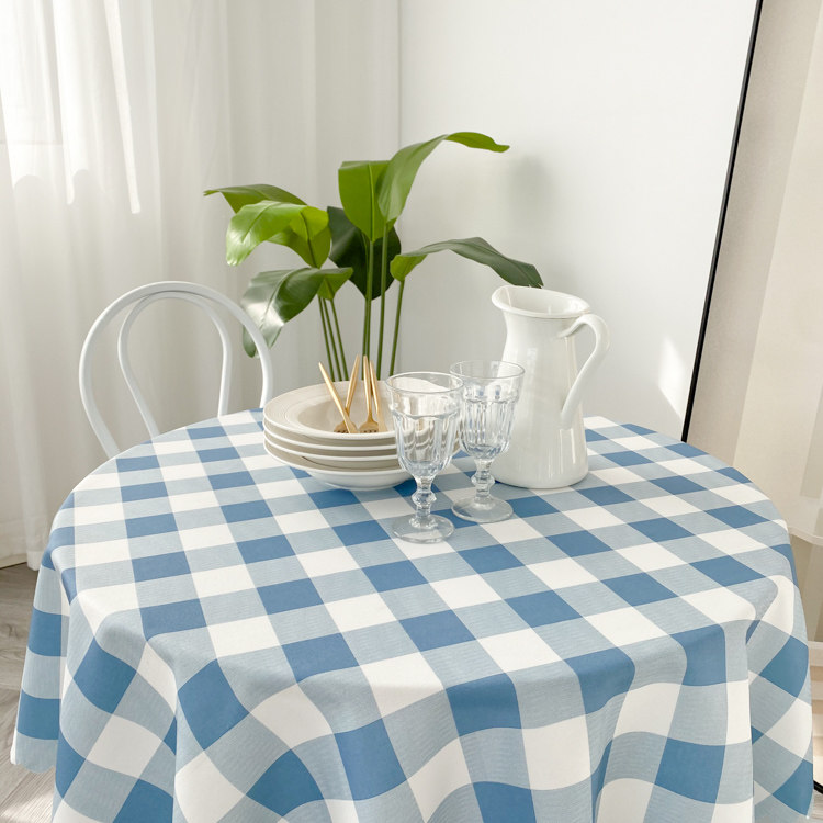 Light blue plaid round table cloth cloth art waterproof and oil free wash home dining room large round table cloth minimalist modern table cloth