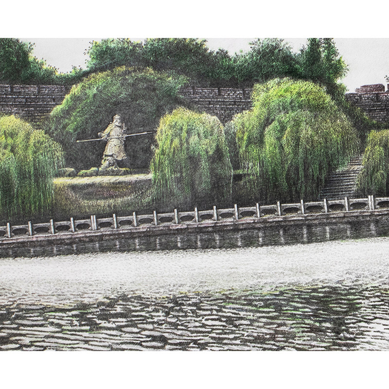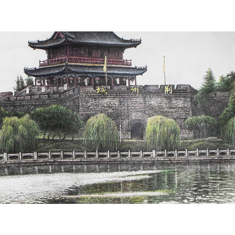 Wang Jichao's "Jingzhou Ancient City" new color pen drawing on paper