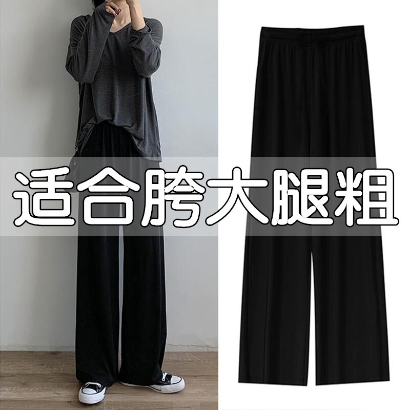 Size ice silk wide leg pants women summer 2022 new fat mm high waist thin hanging feeling casual straight long pants tide