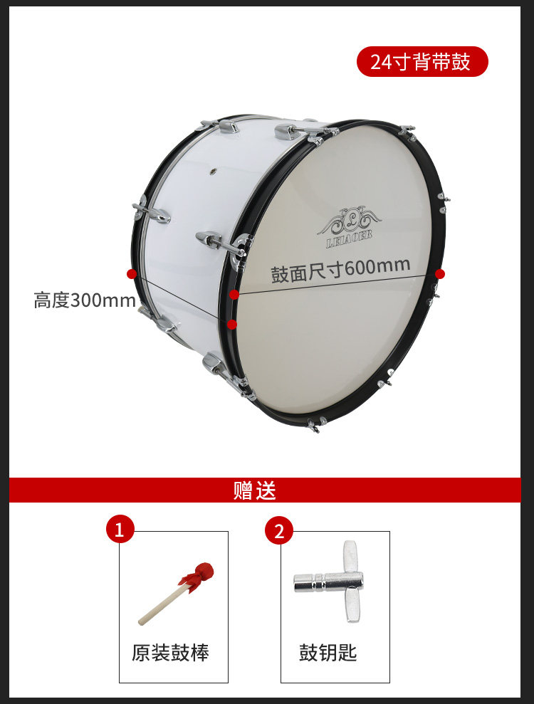 22-inch strap snare drum (Pearl White) 22-inch back frame big snare drum (Pearl White) 22-inch back frame big snare drum (wine red) 22-inch back frame big snare drum (wine red) 22-inch strap