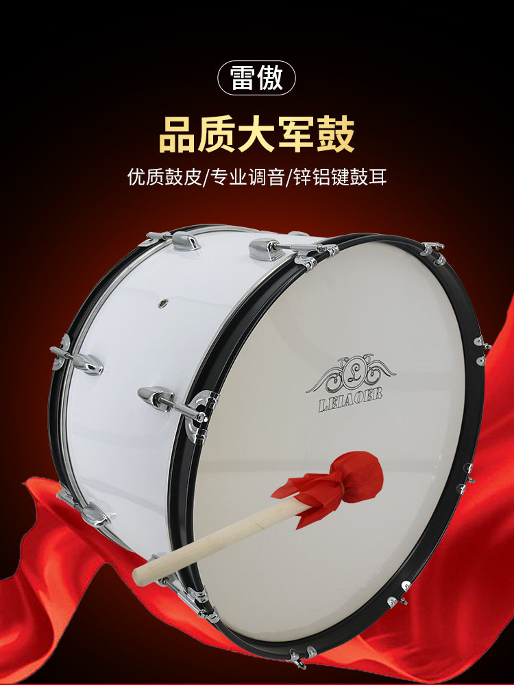 Lei Ao big snare drum 22 24 26 inch Young Pioneers drum musical instrument drum band marching back carrier