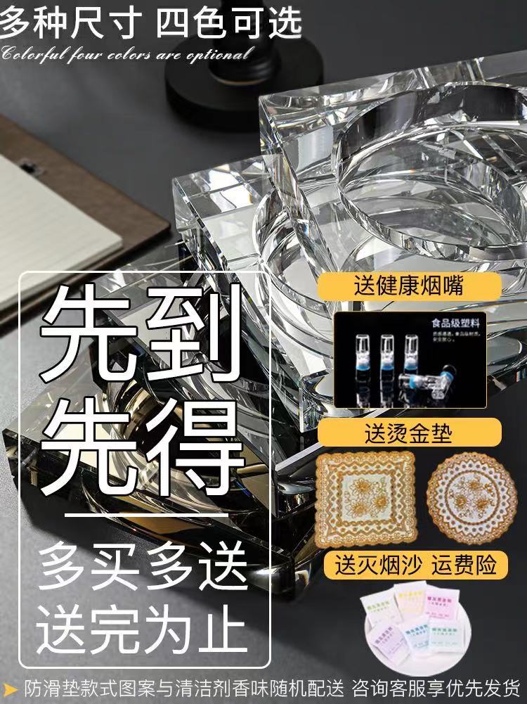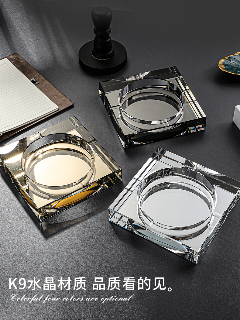 Ashtray crystal glass creative light luxury large living room office home simple cigarette bowl personalized custom gifts