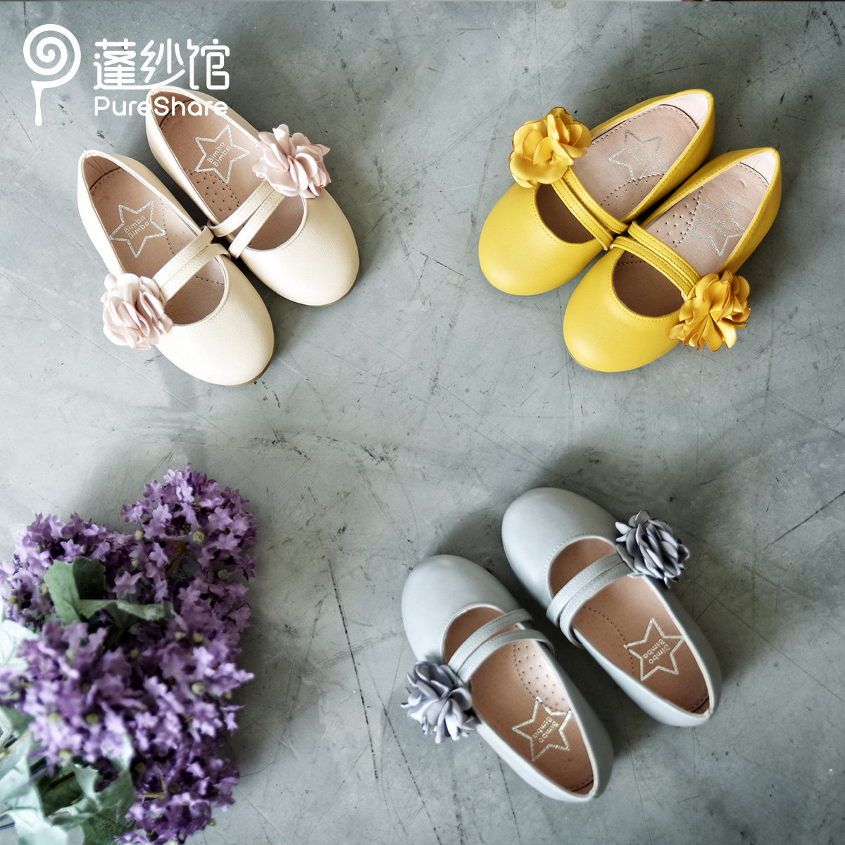 pureshare girl single shoe bean-bean shoes 2021 spring autumn new cute soft bottom baby flowers little leather shoes