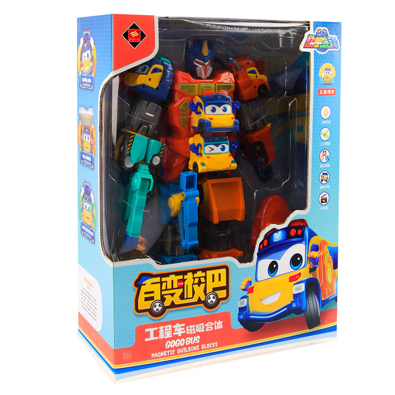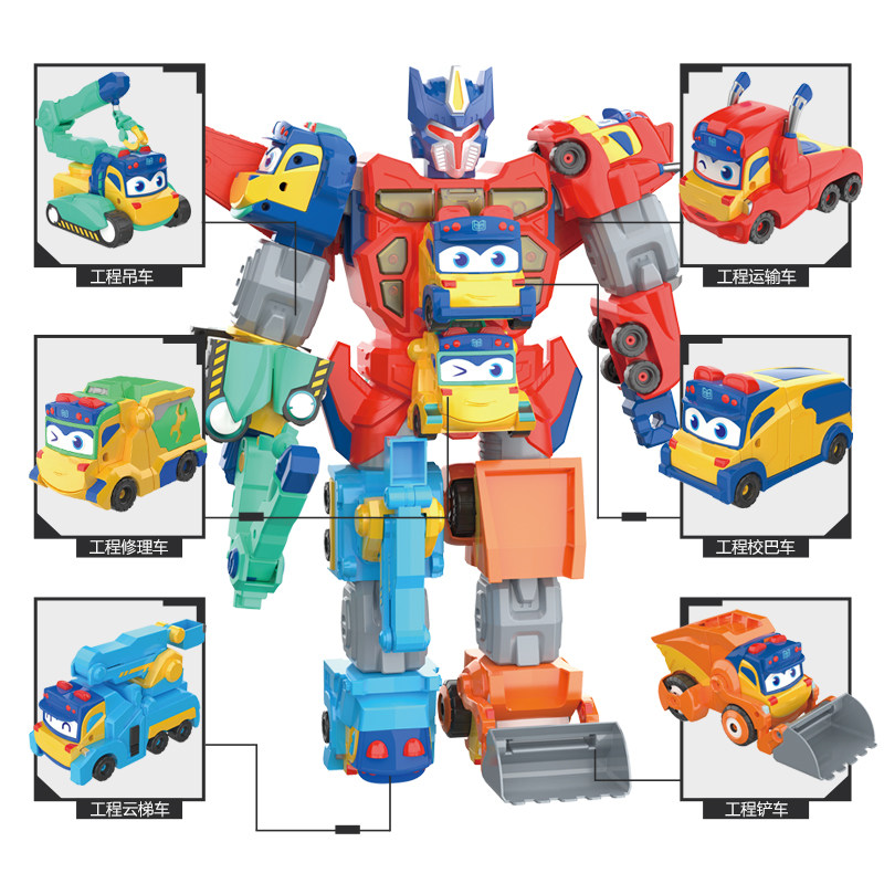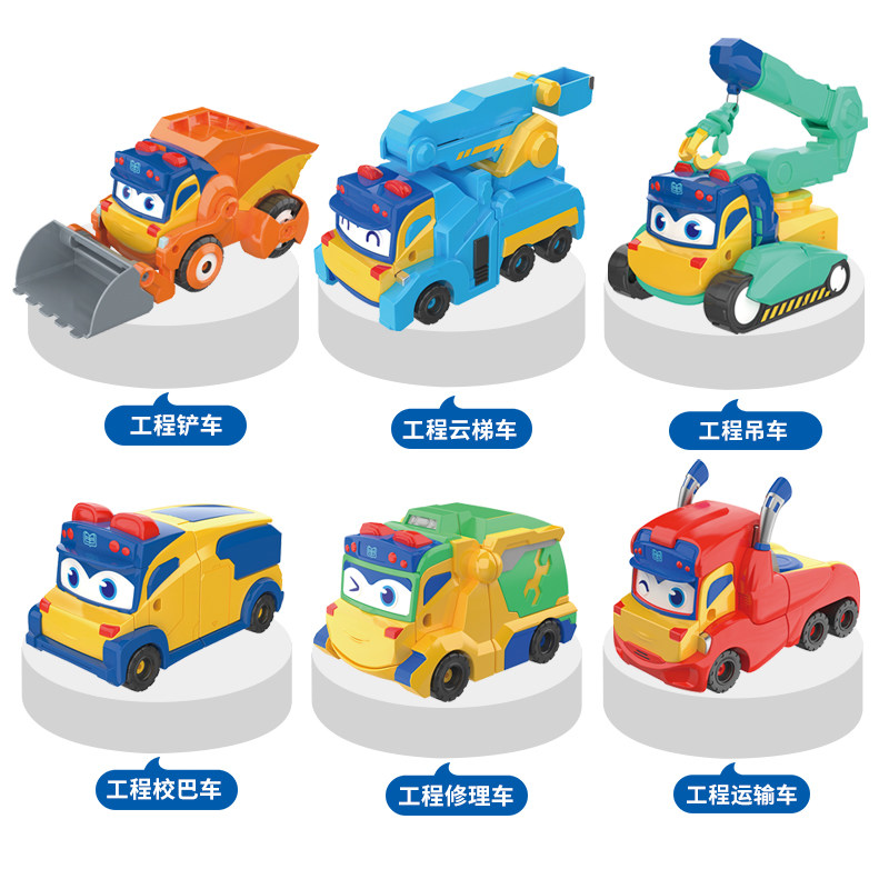 Engineering school bus engineering repair vehicle engineering ladder vehicle engineering transport vehicle engineering crane engineering stacker magnetic suction spaceship six engineering vehicle gift box mecha fit box