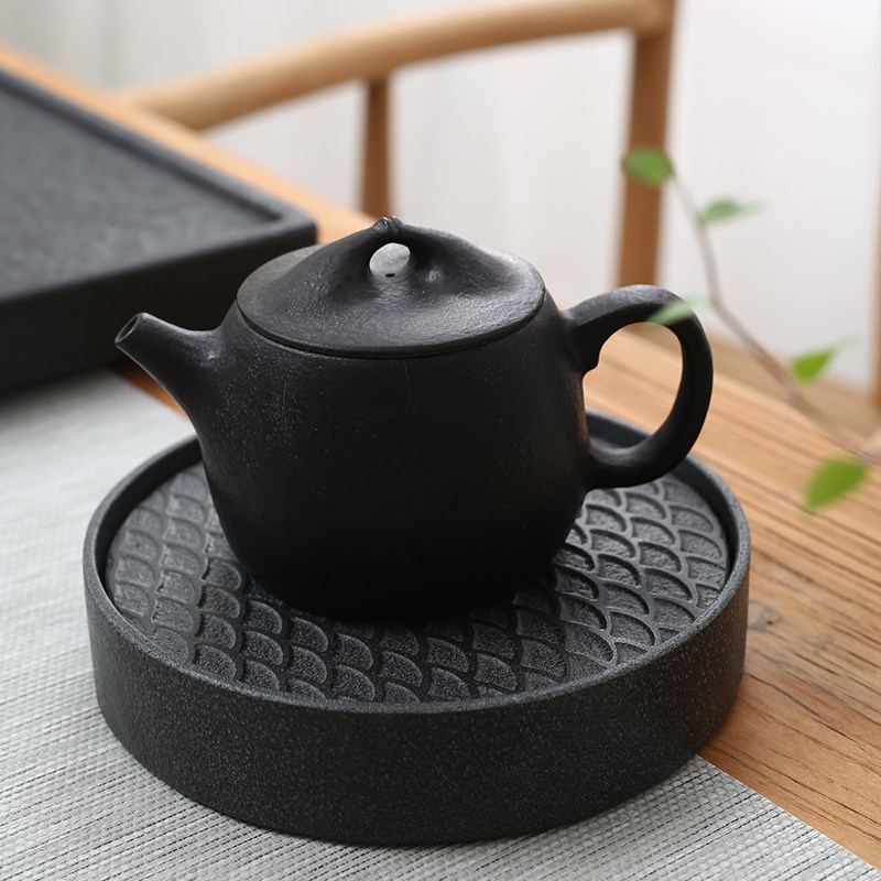Black gold stone pot holder Chinese water storage Mini small tea tray Simple tea stand Teapot seat Tea tray base Tea set Dry bubble table