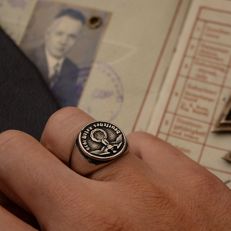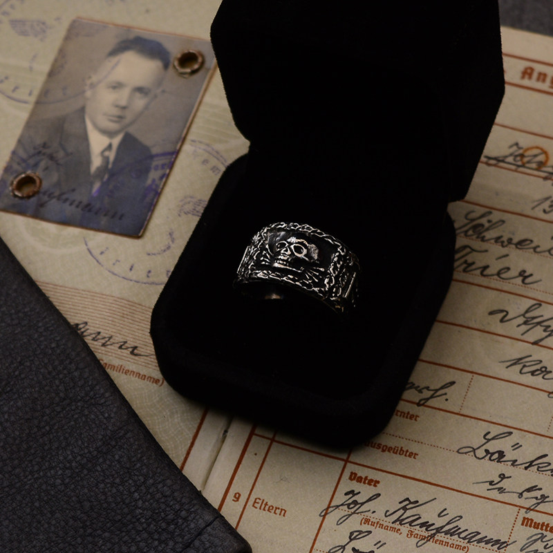 Eastern Line Replica Retro European Lightning Skull Eagle Oak Leaf Titanium Steel Ancient Coin Ring