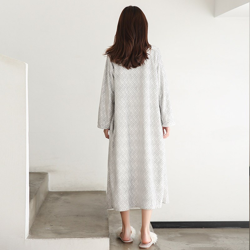 Lacuna lengthened sleeping robe thickened with outer wearing of coral suede pyjamas lovers large size Lazy Man Bathrobe Men's Sleeping Dress Lady Winter
