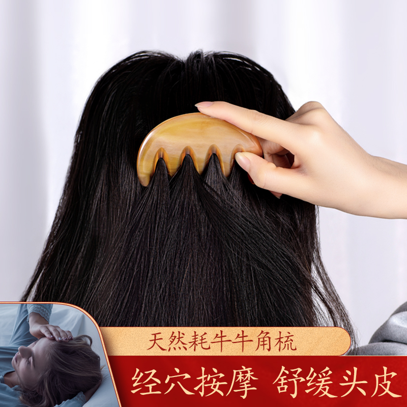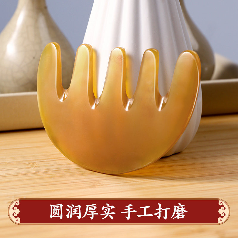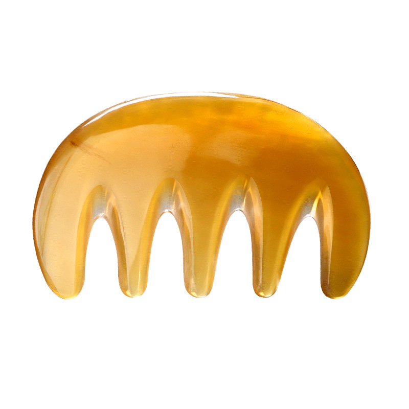 Head comb naturally cattle corner comb through five fingers scratch and massage comb with large teeth and breed hair therapeutic comb