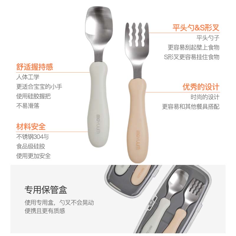South Korea imported MOYUUM children's meal fork spoon set baby silicone stainless steel non-staple food fork spoon tableware