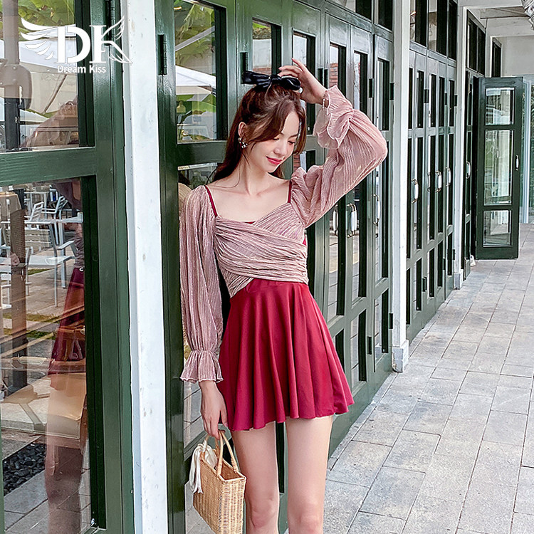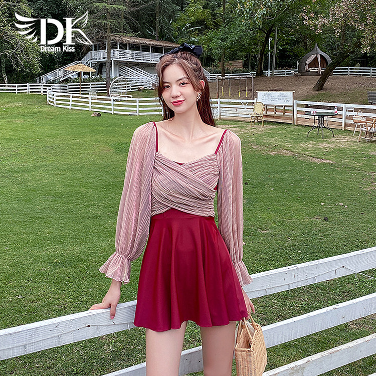 DK swimsuit ladies 2022 new hot spring long-sleeved one-piece conservative slim cover belly Korean ins swimsuit