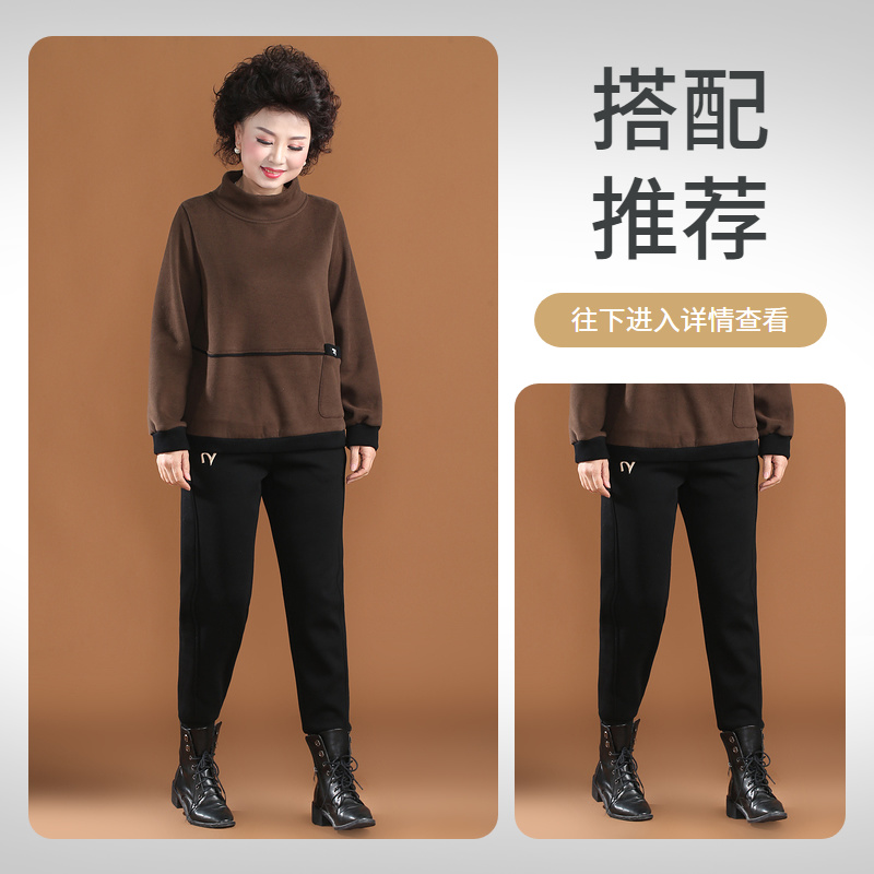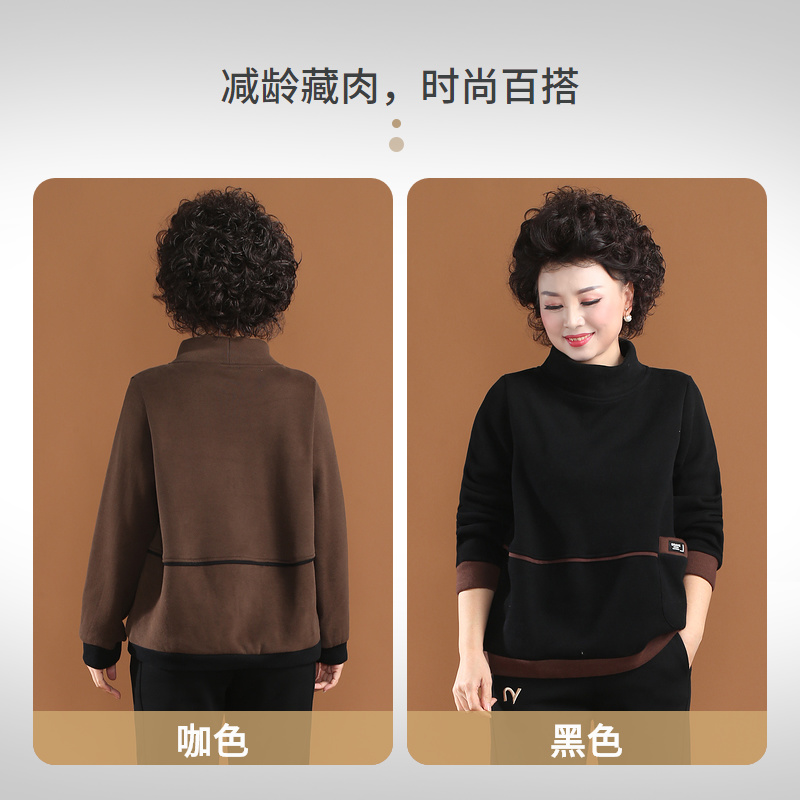 Middle aged short knitted suede cardiovert woman high collar bottom jersey long sleeve plus suede mother winter clothing foreign pie