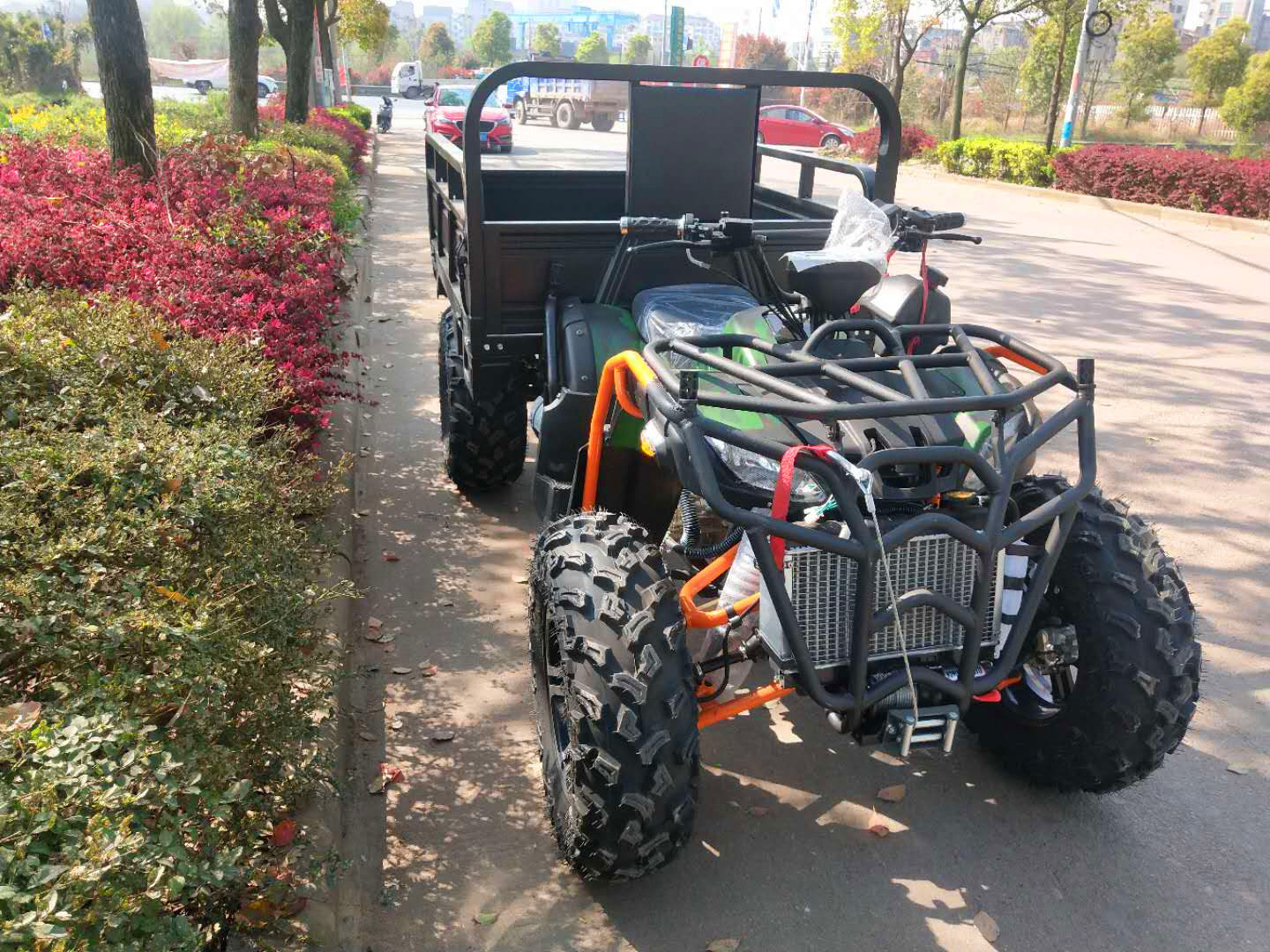 All-terrain full-time 4WD big bull ATV with bucket farmer car quad motorcycle with cargo box farm car