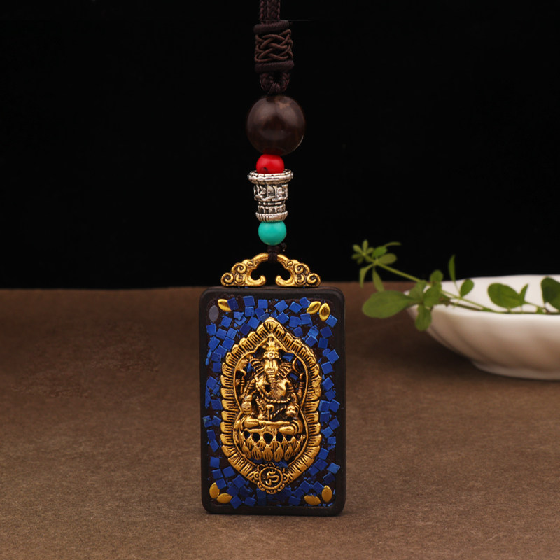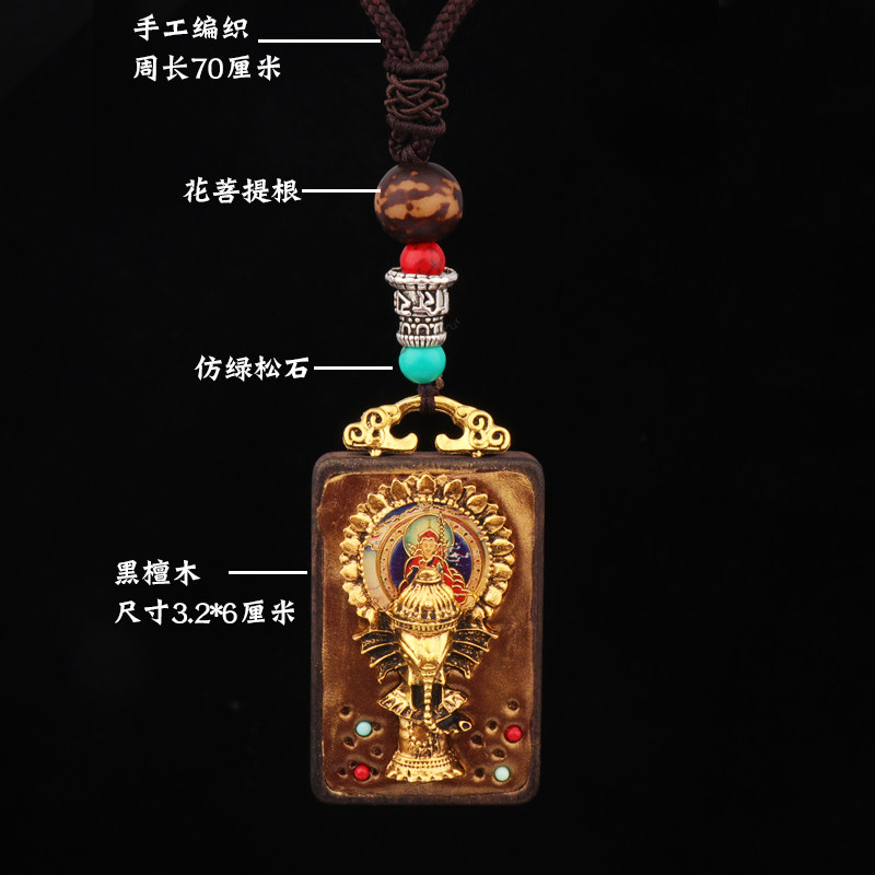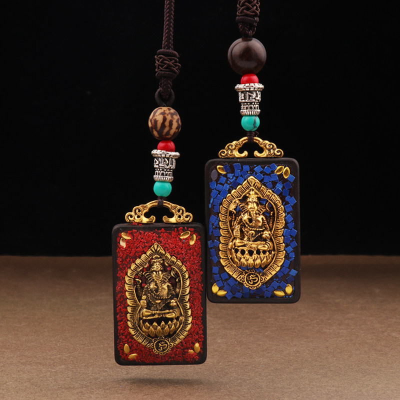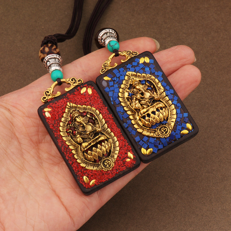 Handmade retro famous ethnic Thangka personality elephant long necklace sandalwood pendant accessories Buddha card square sweater chain
