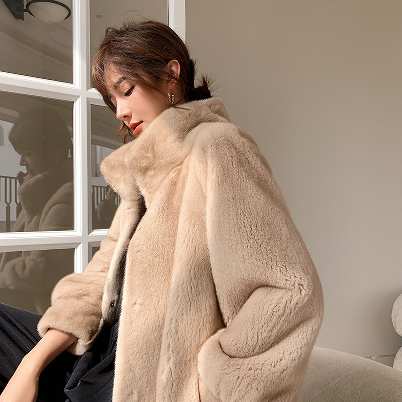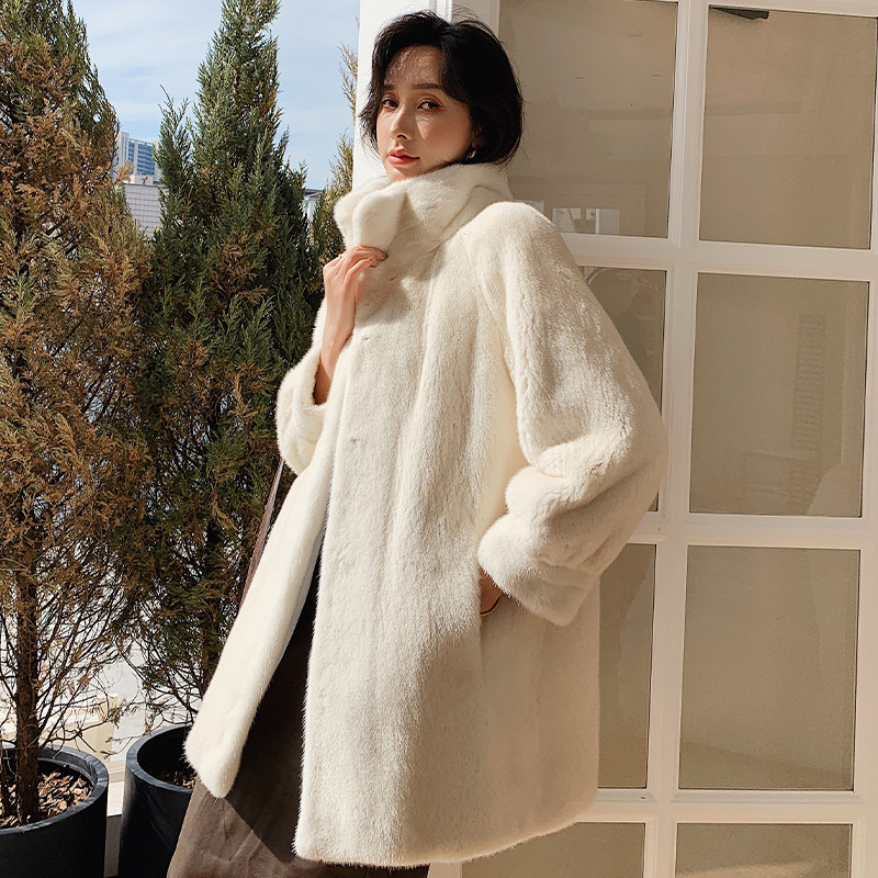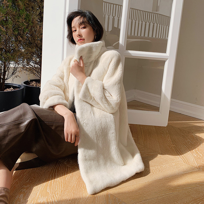 Imported water mink velvet big coat with long young style Henning whole mink mink and mink fur fur coats