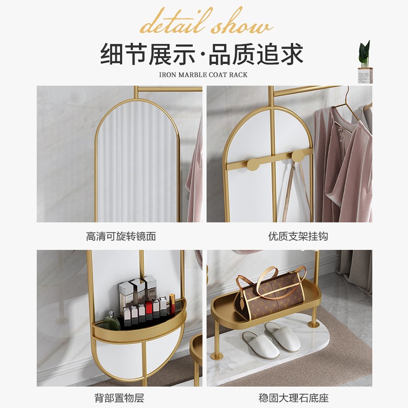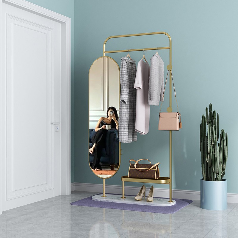 Rotating full body floor fitting full body mirror clothes hat integrated multifunctional modern light lavish home clothing store clothes hangers