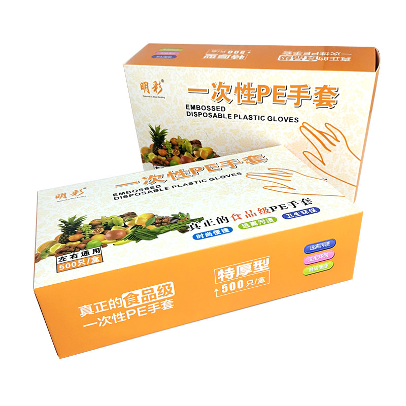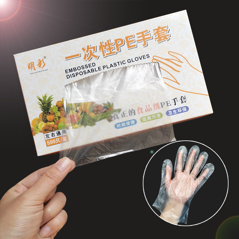 Boxed removable pe disposable gloves thickened film plastic kitchen catering lobster pizza 500 boxes