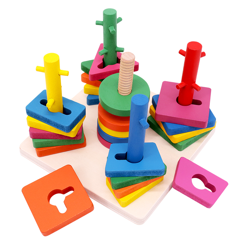 Montessori geometric shape four or five sets of column building blocks Baby 2 early education 3-year-old baby matching cognitive puzzle toys