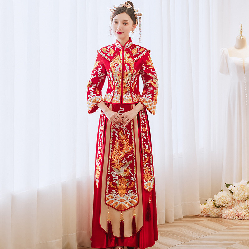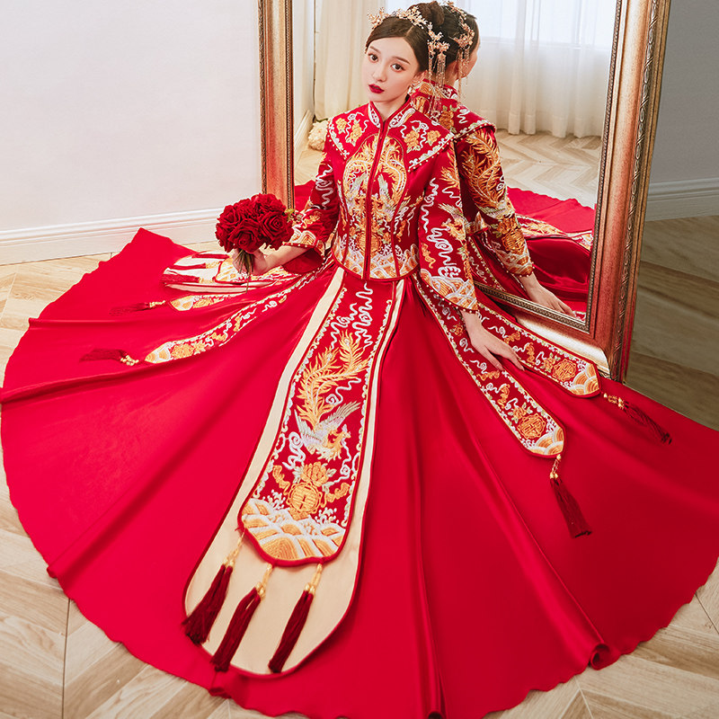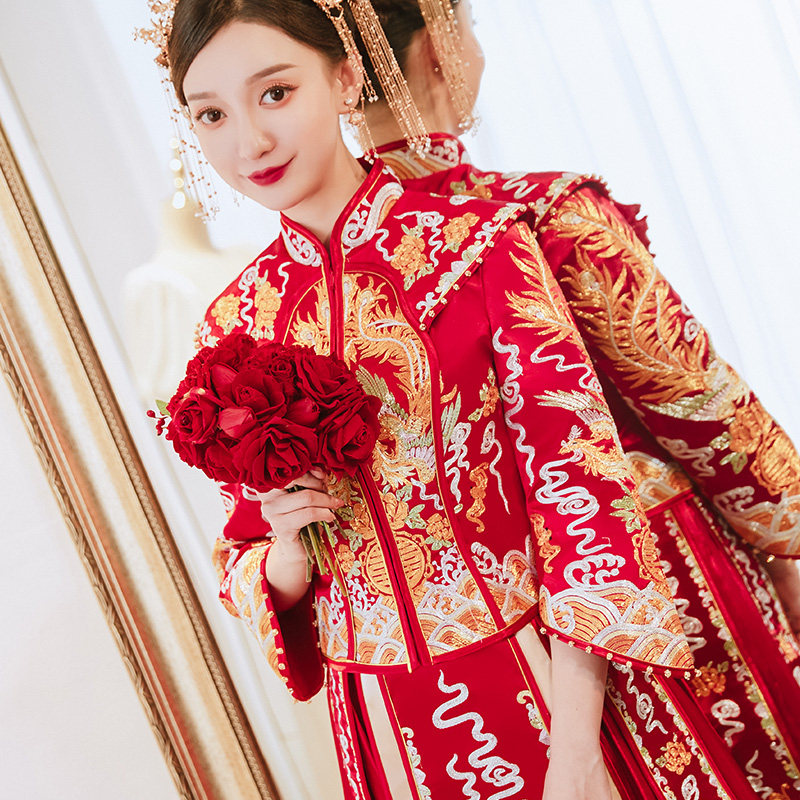 Show and suit bride 2022 new Chinese wedding gown atmosphere high-end show and female summer Longfeng hanging clothes