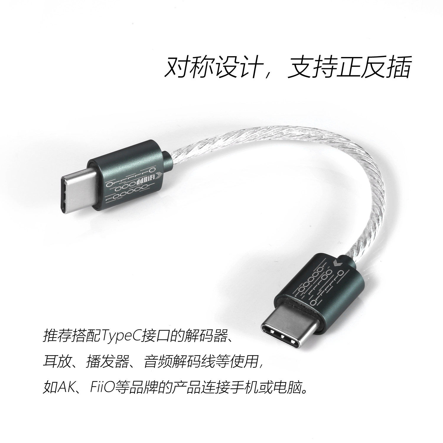 ddHiFi TC05 50cm Upgrade Dual TypeC Digital Cable OTG Single Crystal Copper Silver Plated USB Android Audio