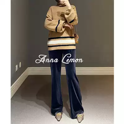 Annalemon gentle and delicate all stay on yarn Lrp chimney collar stripe Vintage cashmere sweater