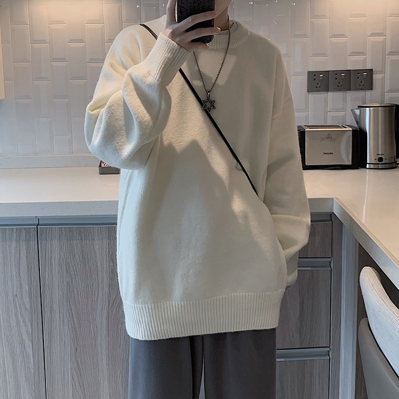 Japanese retro solid color wool sweater with a profile sweater for men's autumn and winter outer wear pullover sweater and white inner wear