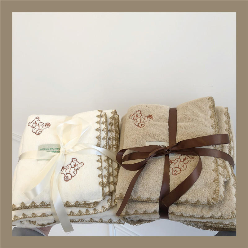 Korea ins cute cartoon embroidered small bear soft and fine with strong skin water absorption strong bath towel student couple
