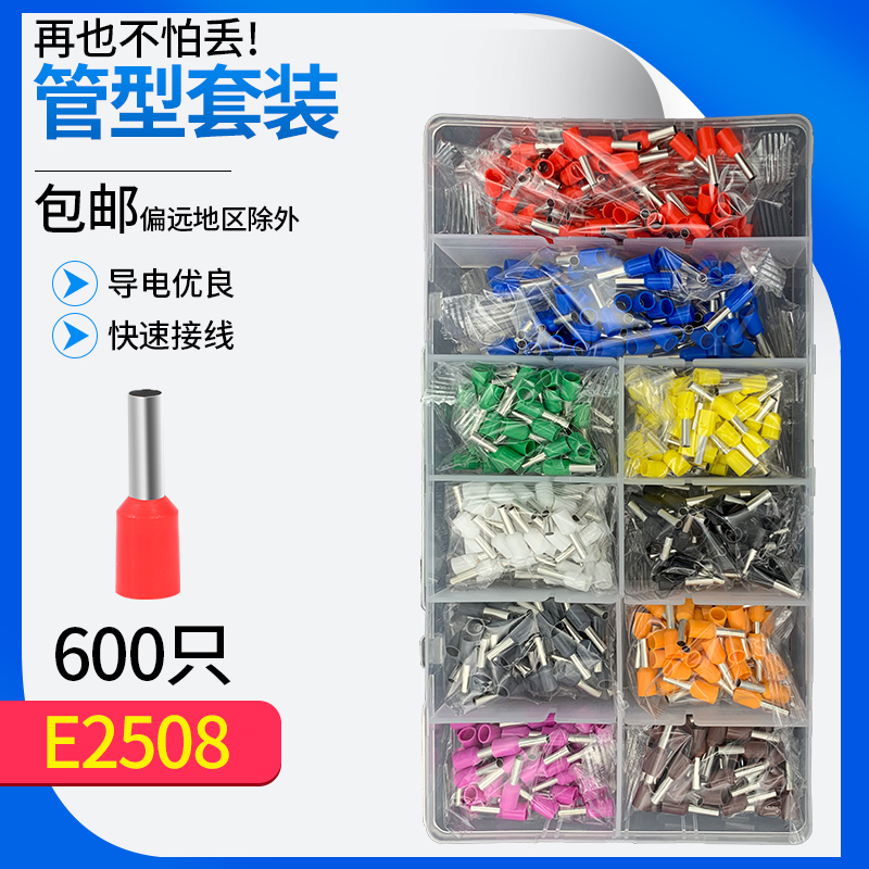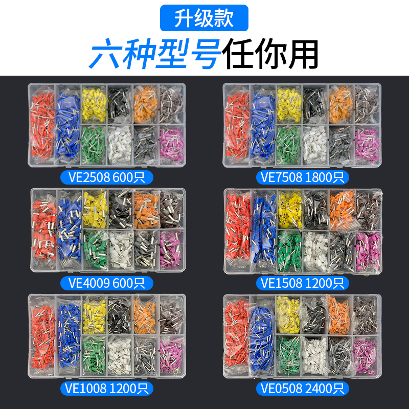 European-style small black clip-type tubular insulated cold-pressed terminal VE0508 E7508 1008 10-color multi-color set
