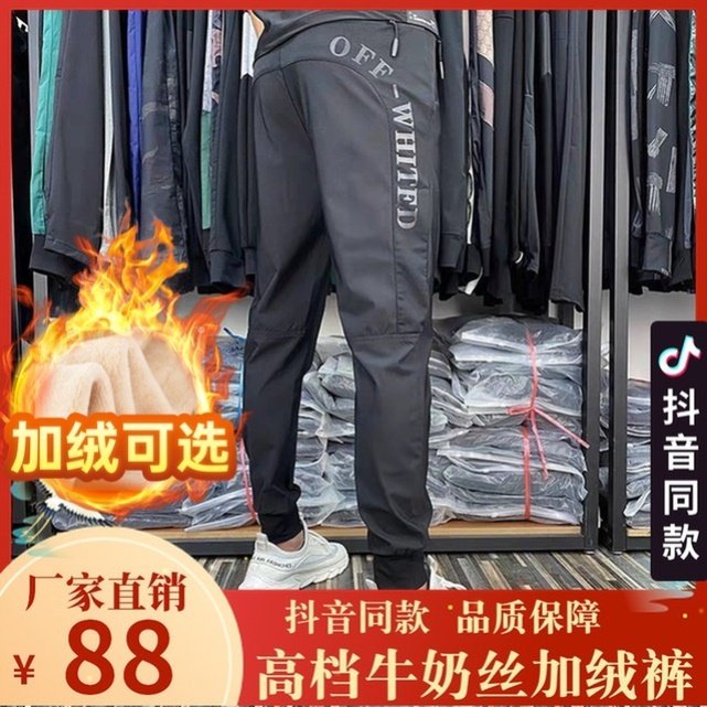 Shivering Tongan Mu Yan Casual Pants Autumn Winter Men's Pants New Letters Splicing Plus Suede Thickened Men's Bouquet Pants Muter