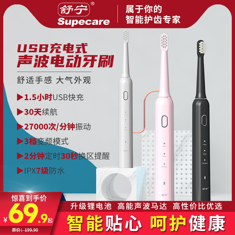 "Live recommendation" Suning adult charging intelligent electric toothbrush frequency conversion sonic bright white soft hair men and women