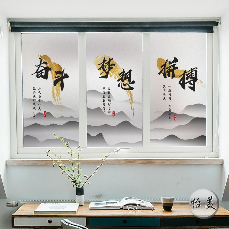 Office electrostatic glue-free frosted glass film ink inspirational text decorative door stickers shading business stickers