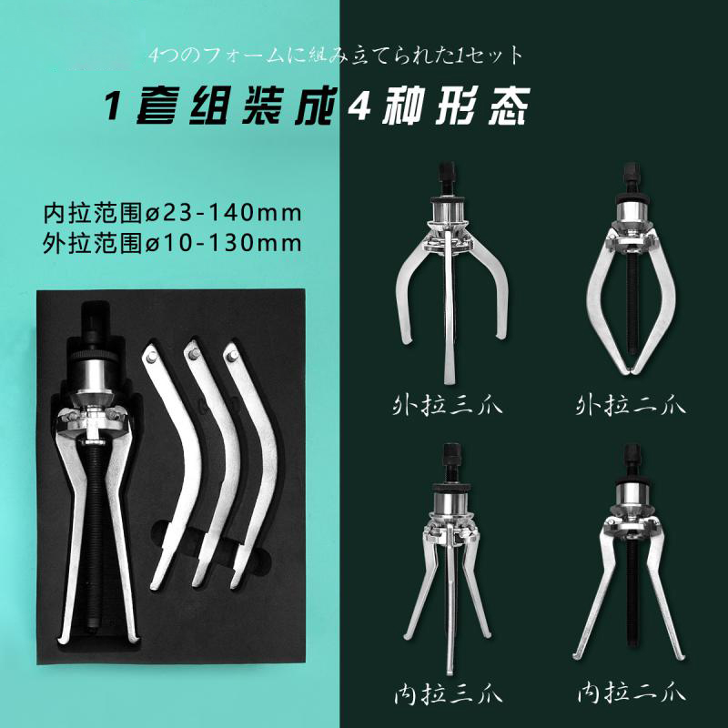 Inner pull-2 claws and 3 claws interchangeable (23-150mm) Outer pull_2 claws and 3 claws interchangeable (7-140mm) Internal and external dual-purpose set (carton box) with sliding hammer Internal and external dual-purpose aluminum