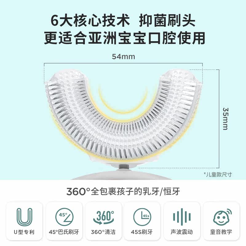 Deep Love Children U Type Electric Toothbrush Baby Full Automatic Sound Wave Charging Flying Saucer U-Shaped Waterproof Soft Hair Toothbrush Suit