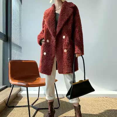 2020 winter new lamb fur wool one-piece coat women's medium and long version loose young sheep shearing coat fur