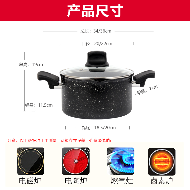 Supor star stone soup pot Household gas induction cooker soup stew pot Porridge ramen pot thickened non-stick pot