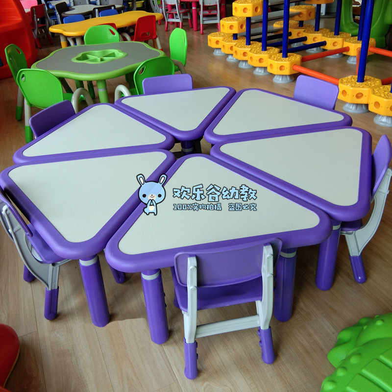 Kindergarten baby learning desk writing drawing table thickened small table three-leaf table crescent desk can lift desks and chairs