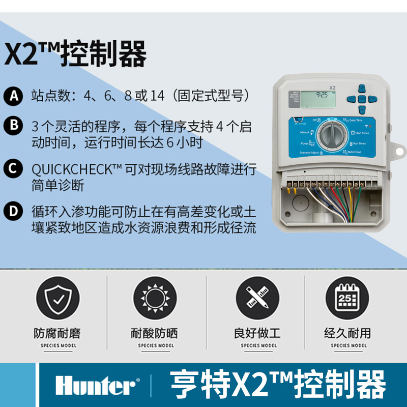 Hunter Hunter's new X2 automatic irrigation controller waterproof wall mount support for mobile phone WiFi remote control