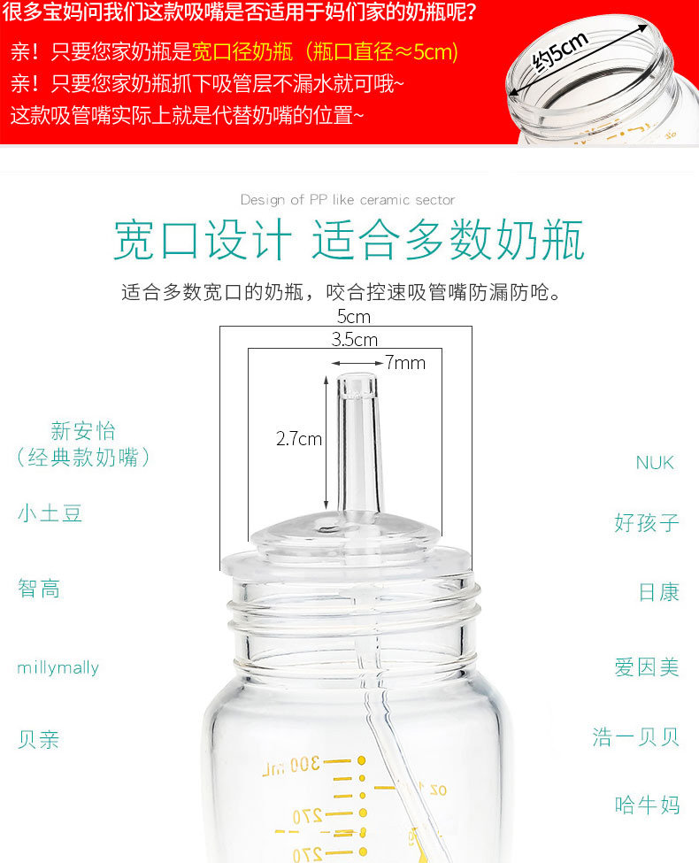 Wide mouth milk bottle accessories straws Gravity ball duckbill nipple handle Universal to give peace of mind Mom Hani Little Bear