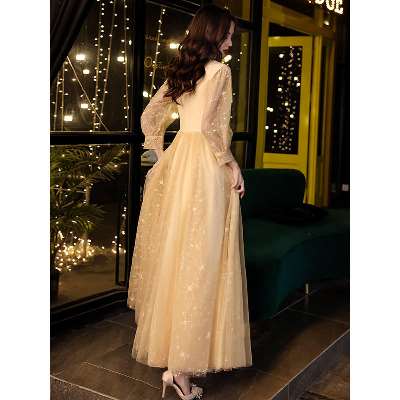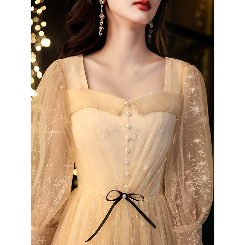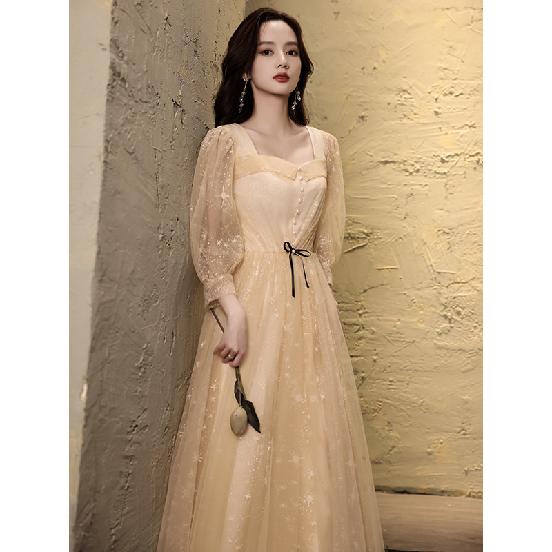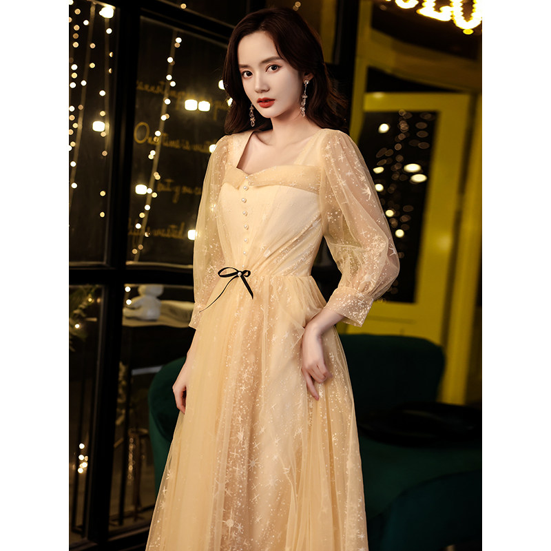 Champagne evening dress skirt female 2022 new banquet temperament host light luxury niche high-end atmospheric dress