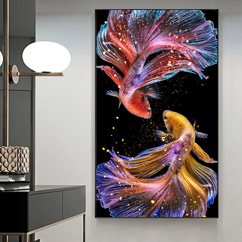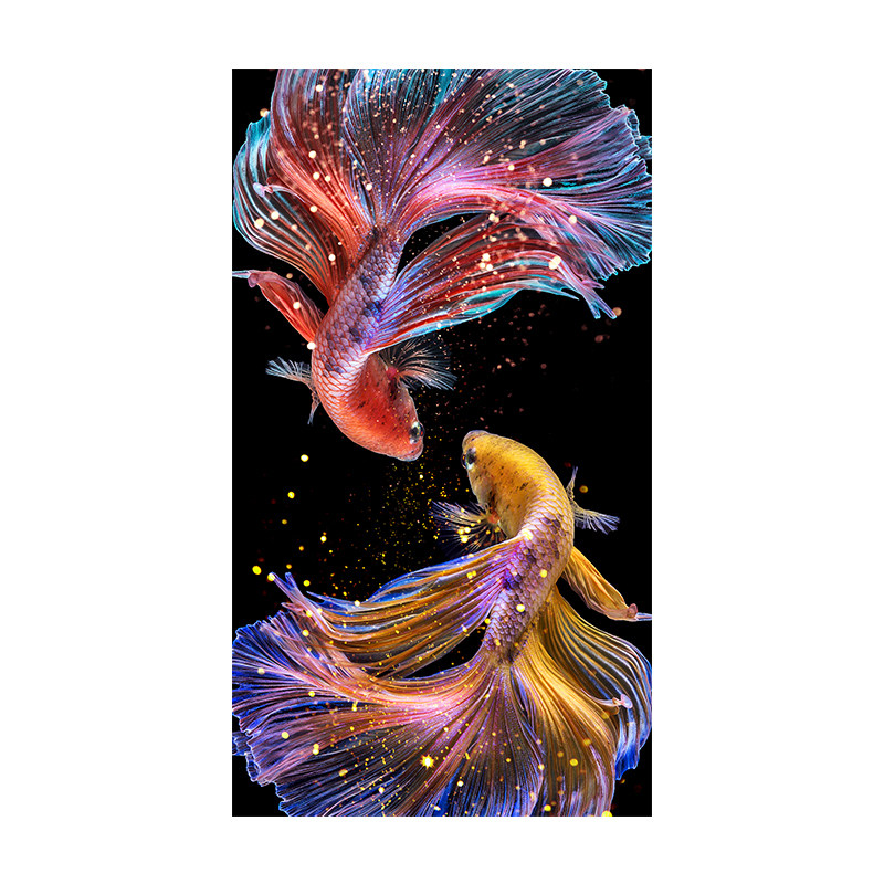 2022 new cross stitch Pisces porch fighting fish figure vertical version living room line embroidery carp figure own embroidery handmade atmosphere