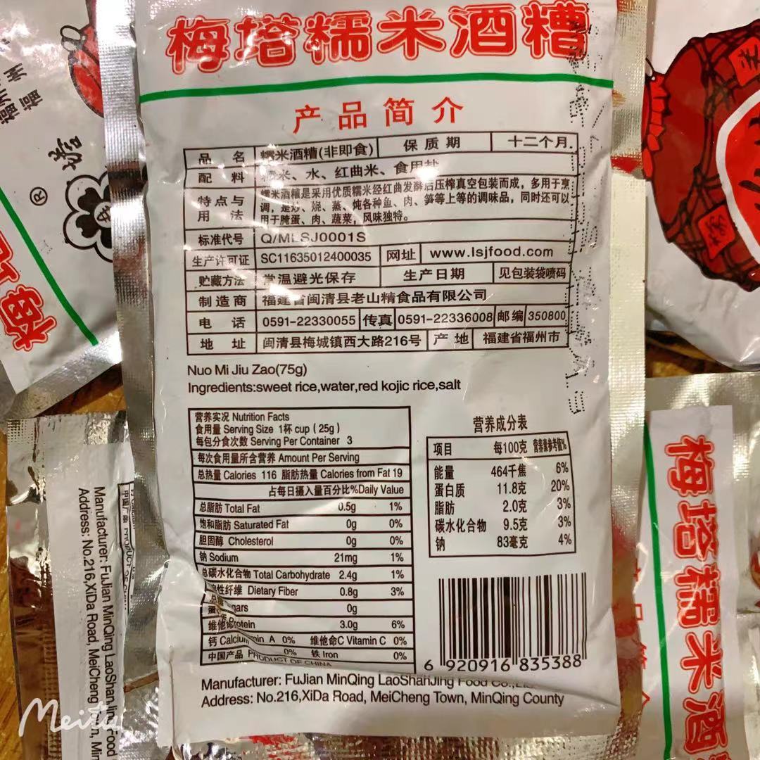Shoot 30 packs of Fujian Tbirth Meta glutinous rice bad red Qu wine bad red wine red bad vacuum packing 75 gr packets