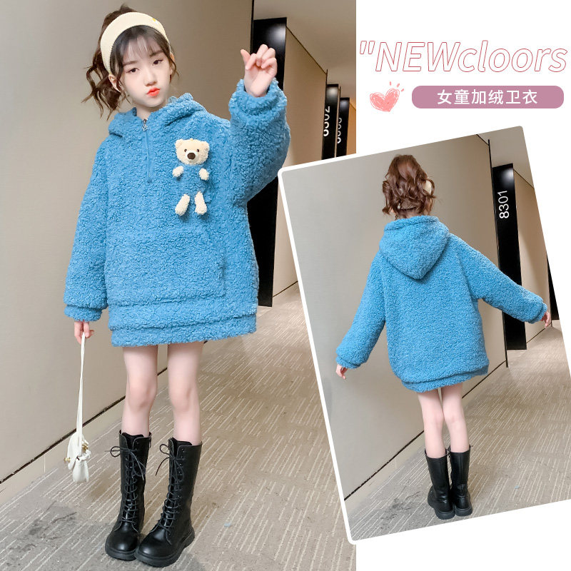 Girls plus jacket in autumn and winter 2022 new children lamb hair thicker winter - dress girls angry bear sweater