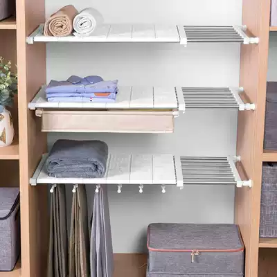 Wardrobe layered partition storage shelf retractable nail-free rack shoe cabinet integral cabinet compartment cabinet sub-Shelf shelf