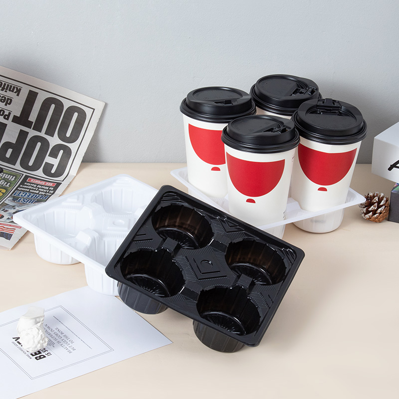 Disposable milk tea shop coffee drink cup tray delivery packaging double cup four cup holder base fixed anti-spray cup holder