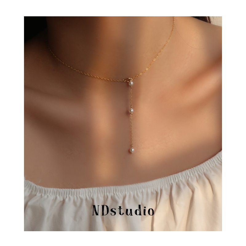 ND* bathing without picking up a pair of two wear * Shih family pearl beauty 14K bag gold adjustable necklace autumn and winter advanced sensation
