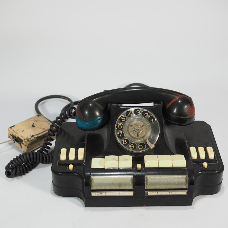 Antique Soviet old rotary dial multi-channel director telephone with button-button-rubber phone folk old object