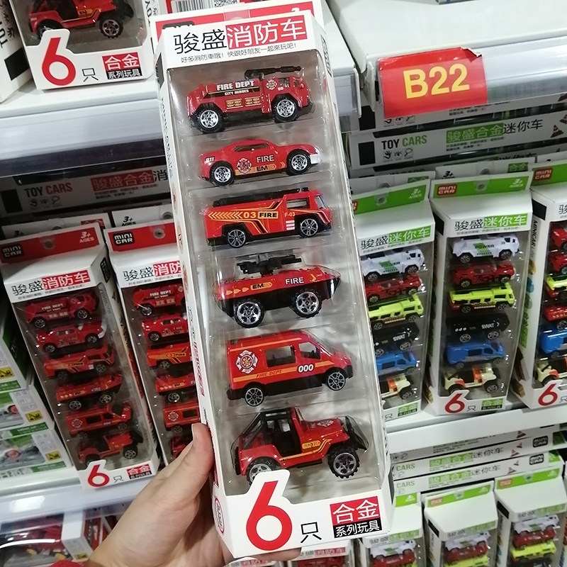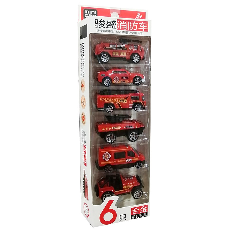 Jun Sheng Children Alloy Small Car Model Toy Mini Engineering Fire Truck Police Car Military Car Boy Presents