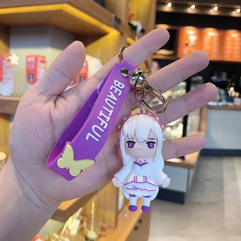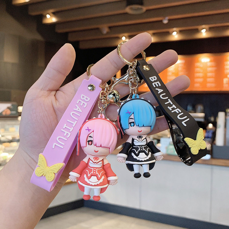 Couple ladies cartoon cute creative personality car key chain pendant bag hanging decoration girl drop glue key button